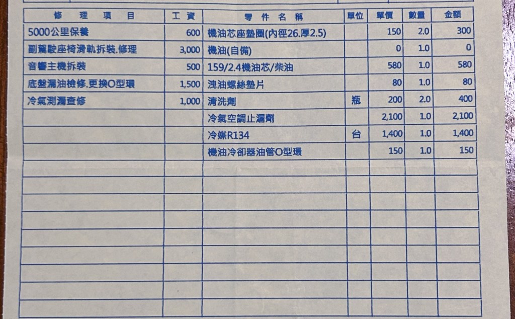 當然,就準備列入第一次大保養的準備項目:冷氣管路清洗、冷凍油更新、冷氣周邊保養。但因為也沒有不能用,就先等保養週期到。