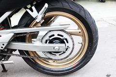 全新整理的卡鉗+白鐵活塞環維修包+A牌金屬油管+前後輪。前叉換油土封、彈簧、前叉油。