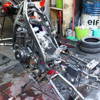 1.前總成拆卸,進行翻新、更換輪胎等。